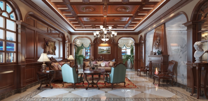 相對(duì)典雅的歐式和婉約的中式,美式風(fēng)格更自由隨意。在吊頂?shù)氖褂蒙希沧非竺骺熳栽冢腿邕@款鏡面吊頂,讓空間更加敞亮舒適。
