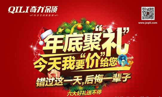 中國客廳吊頂領導者——奇力美式風尚吊頂,元旦促銷活動全面開啟啦!12月5—31日,全國門店響應號召,讓利年底促銷,不“價”都不行!