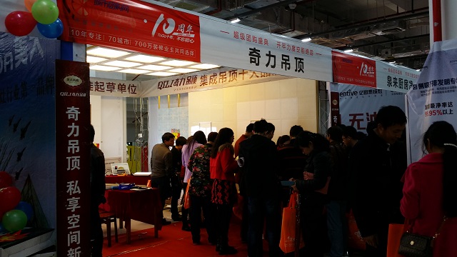 活動現場,人潮翻涌。金華奇力利用本次轟動性的展會效應。精心布置奇力吊頂展位,形象領先的美式風尚,以“梵帝”系列新品立足,產品型號、規格等的轉型,讓前來購選的消費者眼前一亮,吸引了眾多消費者蒞臨選購,將奇力展位圍得水泄不通。奇力銷售部多員干將,聯手金華導購團隊,認真傾聽消費者的心聲,給予周到全面的服務。套餐搭配,贈品相隨,傾力呈現……