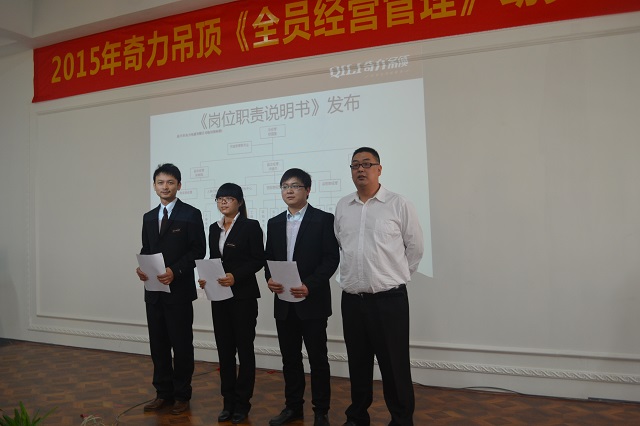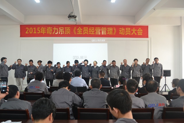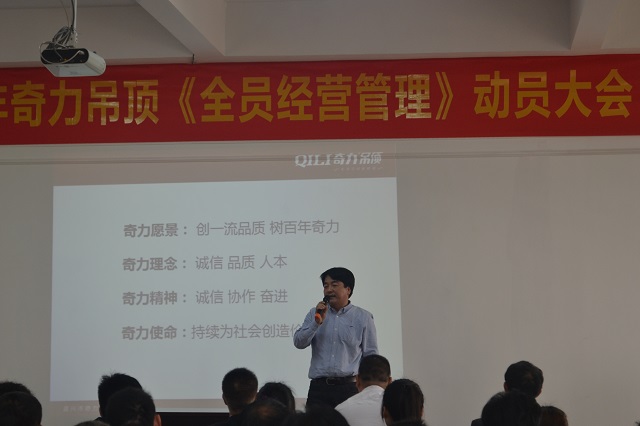 4月2日,繼3月奇力多次大幅對外展示大動作和決心之后,終于迎來奇力內部大變革的伊始?!?015年奇力吊頂‘全員經營管理’動員大會”于8時10分正式拉開帷幕。