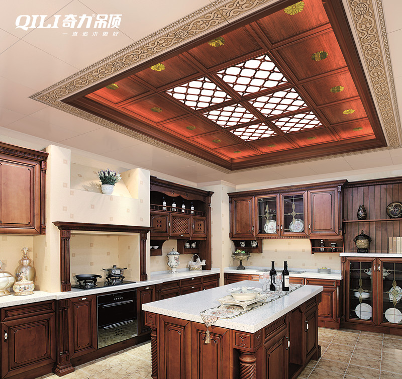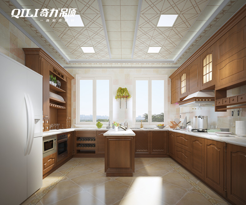 仿木紋色的吊頂和櫥柜門是最經典的搭配